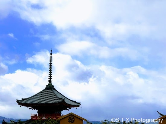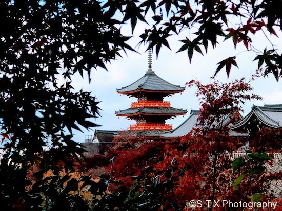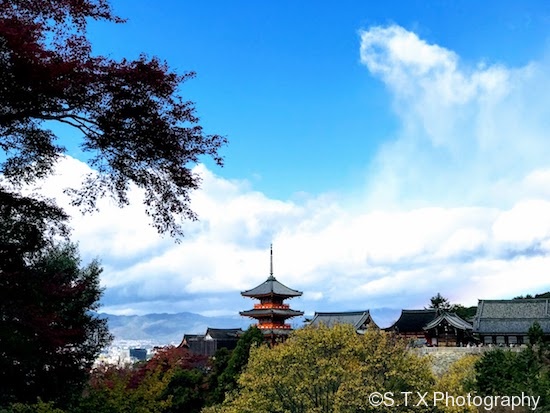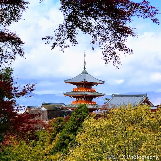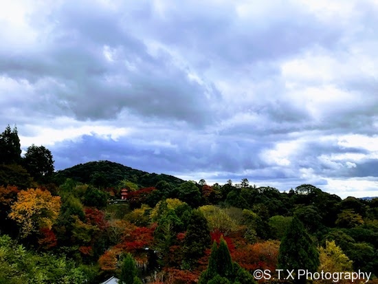 但是,清水舞台正在大修,四周都搭着架子。所以,第二张准备拍摄的照片也泡汤了。此时,天空也飘起了细雨……看满山红遍,层林尽染?似乎来京都的时间还是早了点。