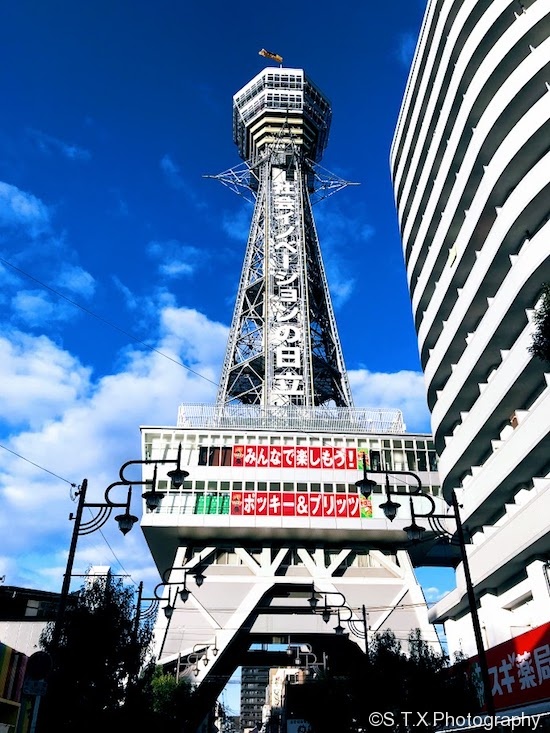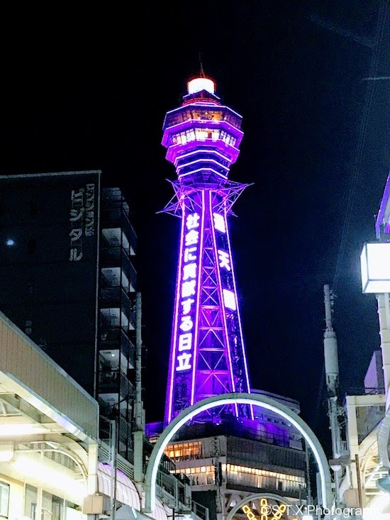 通天阁是大阪的地标之一,还是柯南剧场版3《世纪末的魔术师》的取景地之一。通天阁由明治时期的儒学家南藤泽岳命名,意思是“通往天空的高耸建筑物”。据说通天阁是模仿巴黎的凯旋门和埃菲尔铁塔建筑而成,高度为103米在落成时曾经是日本的第一高的建筑。大阪没什么高楼,搭乘电梯前往顶端的展望台,视野很开阔,观赏大阪的城市风光还是不错的。
