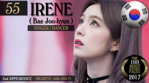 此外,内地艺人鞠婧祎第8,迪丽热巴第26,林允第49,朱珠第75;中欧混血模特Lauren Tsai第46;韩国演员李圣经第32,裴秀智第51,朴信惠第88,Jessica(郑秀妍)第69,高雅罗(高雅拉)第62,女团Red Velvet成员Irene第55,少女时代成员泰妍第40,Red Velvet成员Seulgi第23,BLACKPINK成员Jennie第18,NANA第5;PRISTIN中国成员周洁琼第99,TWICE日本成员Sana第21,BLACKPINK泰国成员Lisa第15。