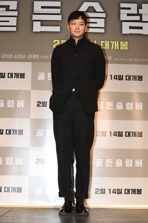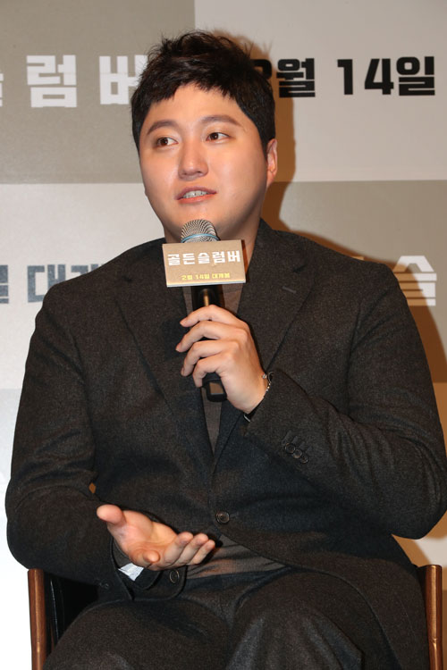 1月17日,韩国电影《金色梦乡 (Golden Slumber)》的制作发布会在狎鸥亭CGV影院举办,卢东石(音)导演携姜栋元、金大明、金成均、金义圣等出席了活动。
