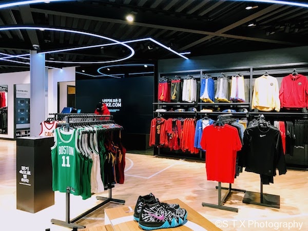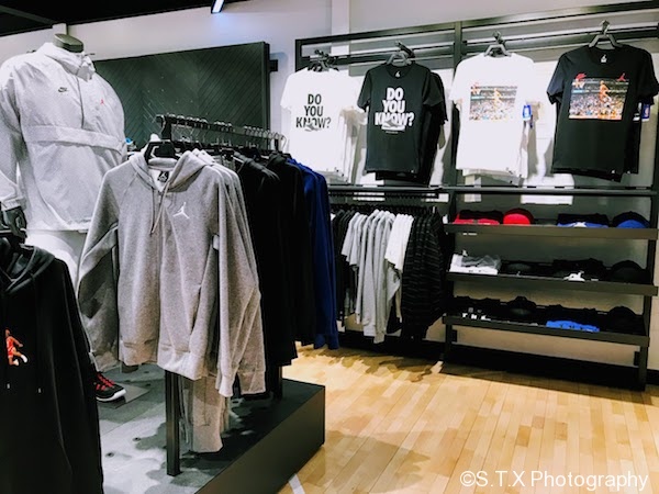 Hoop Dream店内出售球衣、球鞋等篮球运动相关产品,篮球鞋除了乔丹(Air Jordan)还有凯里·欧文(Kyrie Irving)、勒布朗·詹姆斯(LeBron James)、科比·布莱恩特(Kobe Bryant)等人的战靴,款式齐全。