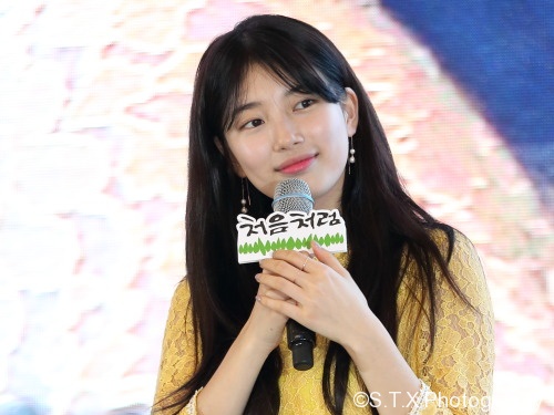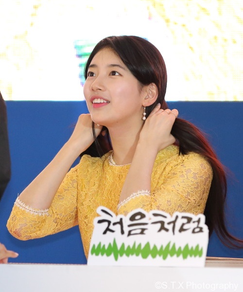 3月17日,韩国歌手兼演员秀智出席了烧酒品牌初饮初乐方面在乐天百货世界大厦店内举办的签名活动。