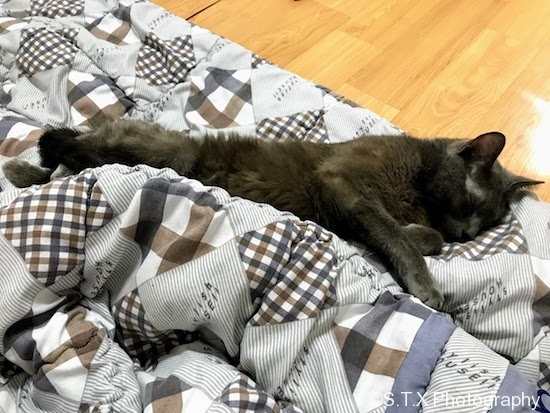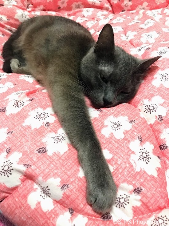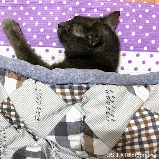 一只衣食无忧的喵的生活原则是:能躺着别站着;能躺在被子上,不要躺在地板上;即便躺在地板上,也要有帅哥陪着。