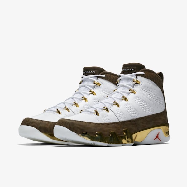 Air Jordan 9 “Mop Melo”以白色、棕色和金色相互搭配,白色的优质皮革打造鞋面,棕色部分特殊的木质纹理增添细节。中底和鞋带眼则以奢华的液态金色点缀,后跟数字 “15” 代表安东尼在雪城队时的球衣号码,搭配乳白色水晶外底,质感细节甚至堪比 Air Jordan 9 “Bin 23”。