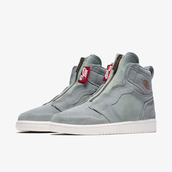 Air Jordan 1 High Zip “Mica Green” 采用早先释出的 Air Jordan 1 High Zip 鞋型,舍弃了经典的鞋带设计,以极具高街风范的拉链设计替代之。而云母绿色调的翻毛皮材质,柔软且极具质感。搭配金属色调的飞翼 Logo 以及内侧醒目的红色 Nike 标示,与9孔OG鞋型呈现出完全不同的气质。