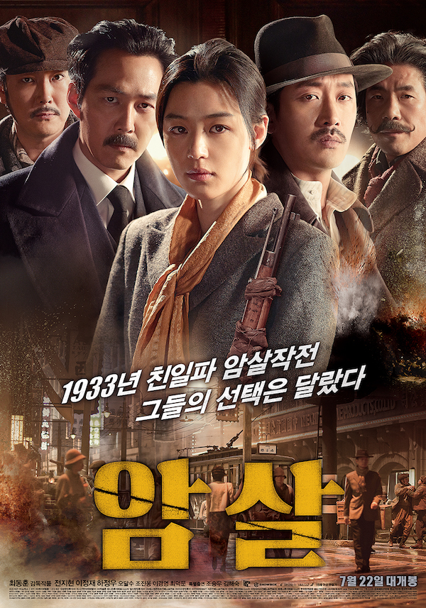 《暗杀》是由崔东勋导演执导,全智贤、李政宰、河正宇主演的韩国动作电影,于2015年7月22日在韩国上映。