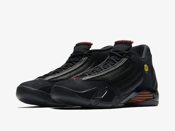 最后一投其中的一款,独特的飞翼后跟首次发售。球鞋以最后一投主题的黑红装扮呈现,鞋帮纹理和鞋舌的法拉利标志都承袭自经典的 Air Jordan 14 同款配色。后跟以硕大的飞翼 LOGO 呈现,给人耳目一新的视觉冲击力。