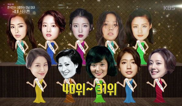 40.李荷妮、39.朴宝英、38.IU、37.李孝利、36.张美姬、35.雪炫、34.金惠子、33.金姈爱、32.朴信惠、31.文彩元 未完待续……