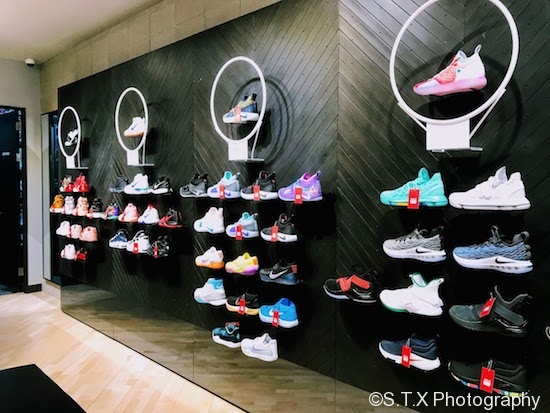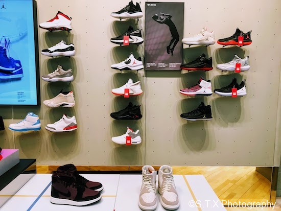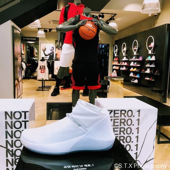 一般篮球用品专卖里的配置都是Air Jordan系列,加上勒布朗·詹姆斯(LeBron James)、凯文·杜兰特(Kevin Durant)、凯里·欧文(Kyrie Irving)系列。书岘NIKE旗舰店的一楼则配置的是Air Jordan系列和保罗·乔治(Paul George)、凯里·欧文(Kyrie Irving)、勒布朗·詹姆斯(LeBron James)以及Nike Air Force 270系列。