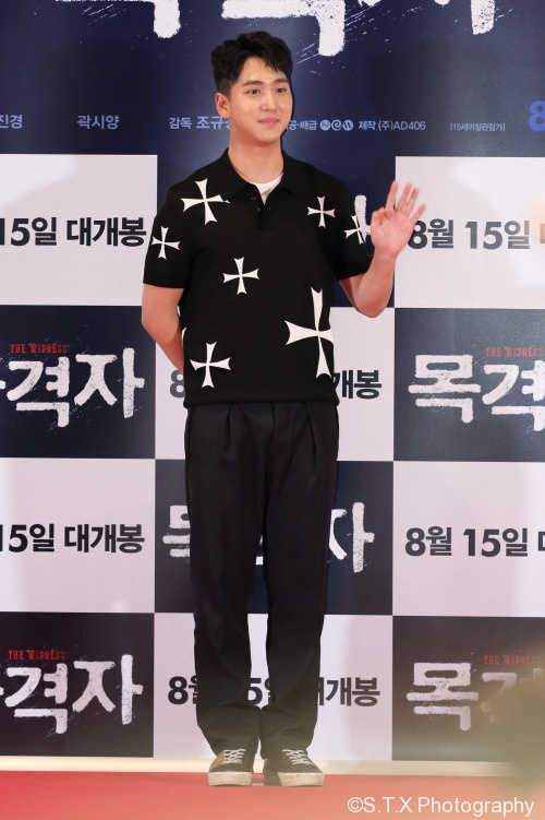 8月8日,韩国演员李己雨赵在允、车善玗(Baro)、林世美金赛纶、张姬领、韩善伙景收真郑多彬朴海镇、朱多英、Girl's Day成员Yura、歌手柳星恩等出席了电影《目击者》的VIP试映会。
