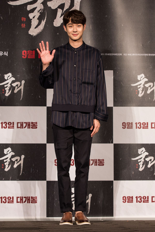 8月16日,韩国演员金明民惠利、金吝劝、崔宇植等在建大入口乐天影院出席了电影《物怪》的制作发布会。