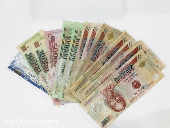 越南盾数值很大,最大面值50万,结算时容易混乱。机场、酒店都有兑换服务,所以不用担心。飘在思密达到达内排机场,换了一张100美金大约230万越南盾,然后在旁边柜台买了手机卡。