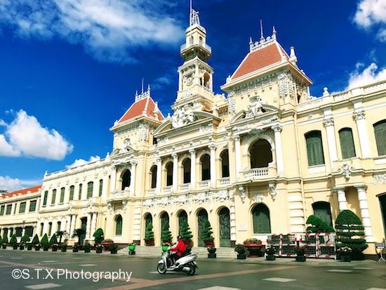 胡志明市政厅于1902年兴建,虽只有二层却也具有浓烈法国风格。整座建筑线条简洁,屋顶为红色,外墙为黄色,在蓝天白云的映衬下显得格外明艳。