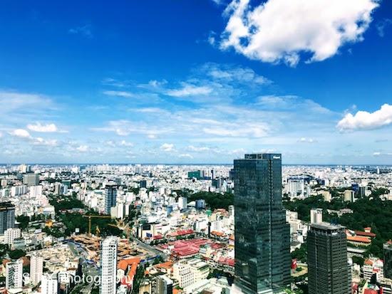 天气晴好,决定登上金融塔看看风景。金融塔高262米,共68层,2010年底对外开放,内有商场、电影院、餐厅、会议室等。观景台位于金融塔的第49层,门票20万越南盾。