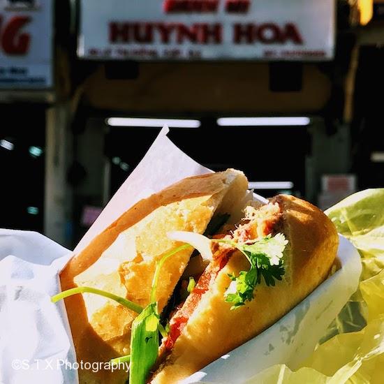 Huynh Hoa门口通常都是排着队的,当地人和外国游客混在一起。如果遇上有人一次性买了10个、20个的,且等吧。好不容易拿到手,咬一口口感爆棚。香酥的面包,Q弹的肉片……各种味道一齐袭击味蕾。