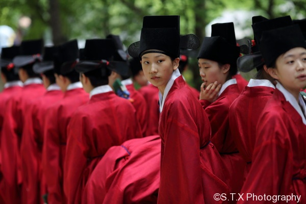 还有跳八佾舞的这些高中生们,一脸稚气,却让我这个中国人在韩国第一次看到了八佾舞。第一次了解到八佾舞是学习论语的时候,《论语·八佾》中,孔子谓季氏,“八佾舞于庭,是可忍也,孰不可忍也?”不过按周礼规定,只有天子才能用八佾,诸侯用六佾,卿大夫用四佾,士用二佾。所以我对李家祭祀能否用八佾舞,还有有点疑问的。【飘在思密达原创 图片版权所有】