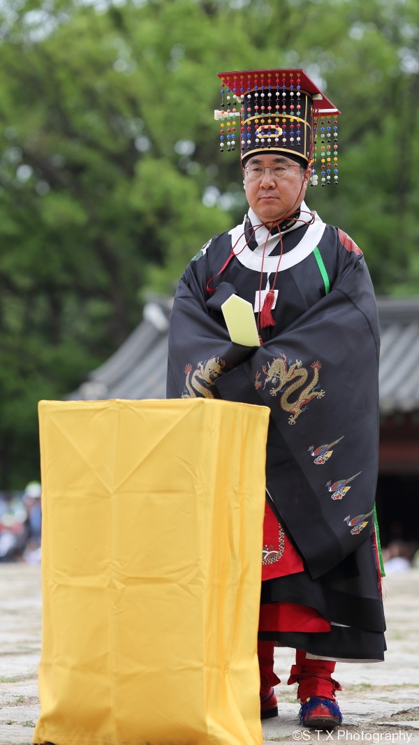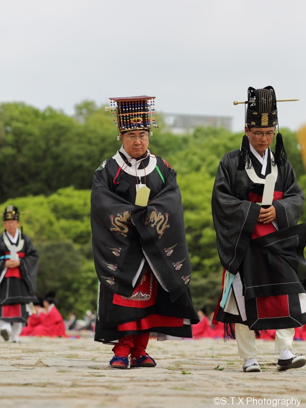 韩国每年动员上千人准备这一盛大活动,传递儒家传统,当属不易。这种传统的综合性祭祀文化,虽然是从中国学来的,但能保存几百年流传至今,并且在礼仪顺序、祭祀食物、音乐舞蹈等每个环节上都精心准备,不敢有疏漏。当然与朝鲜王朝李氏一脉传承600年有关系,不像中国王朝更迭频繁,有姓刘的,有姓李的,有姓朱的,祭祀的话,应该祭祀哪一家?祭祀官员们身着的服饰,也许佩玉和玉带都被现代形似逼真的塑料代替,这些小细节也许都已不重要了。王朝的继承人皇嗣孫李源(高宗的曾孙)现在也许也是个每月10号等着发工资的老干部,那又怎样呢?