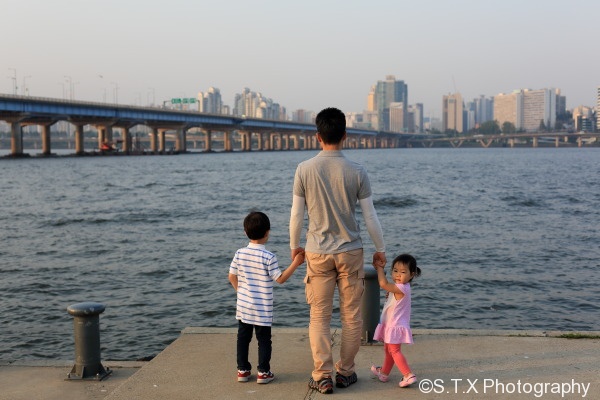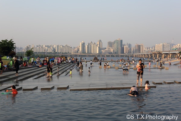 来到久违的汝矣岛汉江公园,孩子们已经泡在水里,早早地享受水世界。