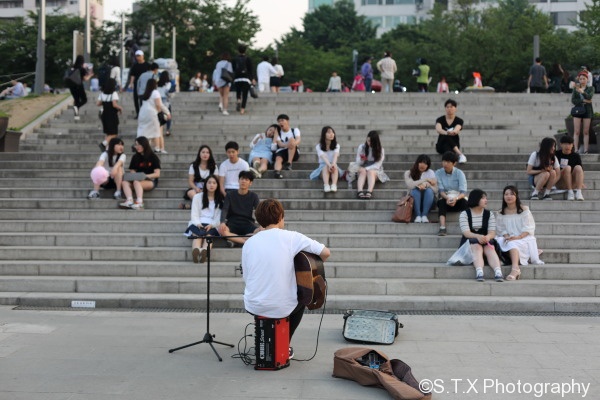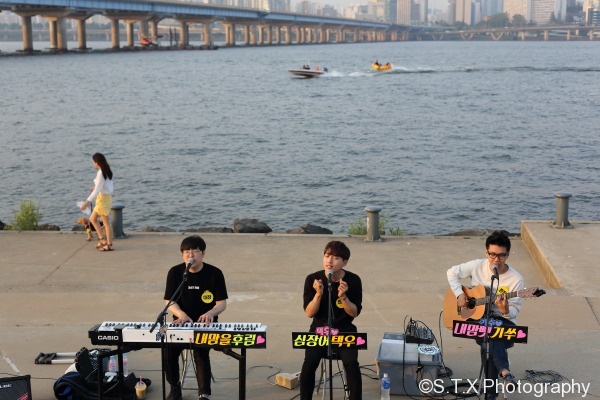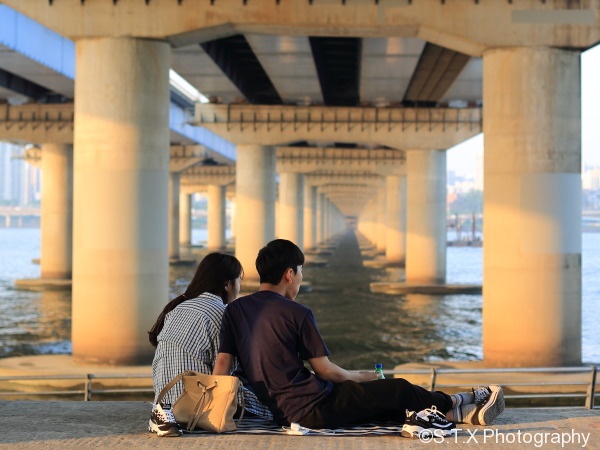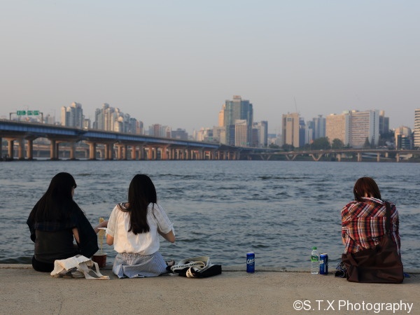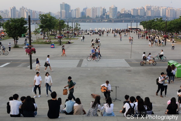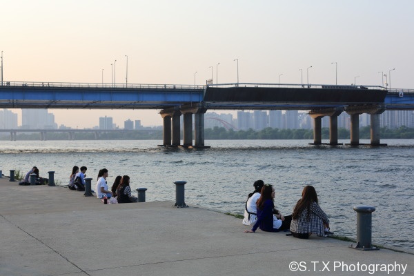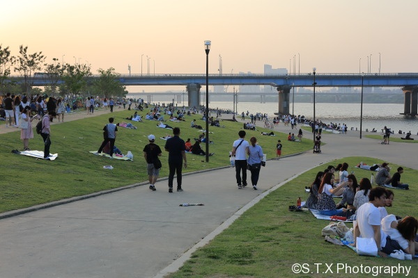 韩国人通常喜欢在江边公园里吃上一碗泡面,或者吃炸鸡喝啤酒,伴着徐徐微风,倒也别有风情。