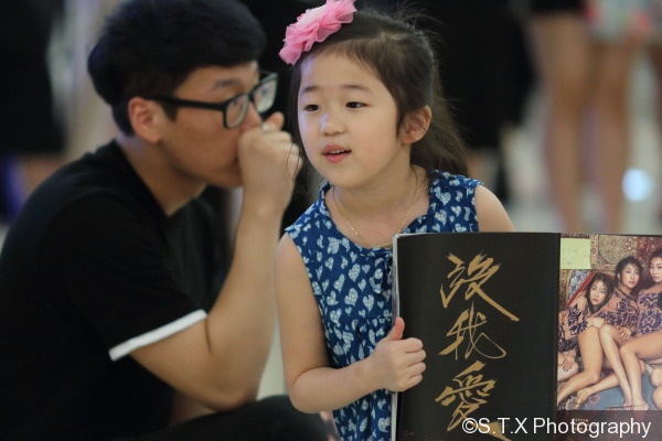 宝拉最先入场,我刚开始站在正对面,不过是在等待签名的粉丝们身后。