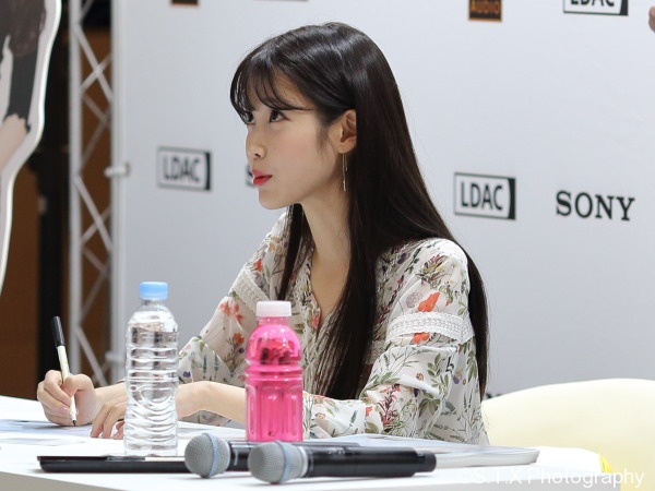7月25日下午6时,歌手兼演员IU现身首尔汝矣岛IFC MALL,为所代言的品牌索尼耳机举办粉丝签名会。
