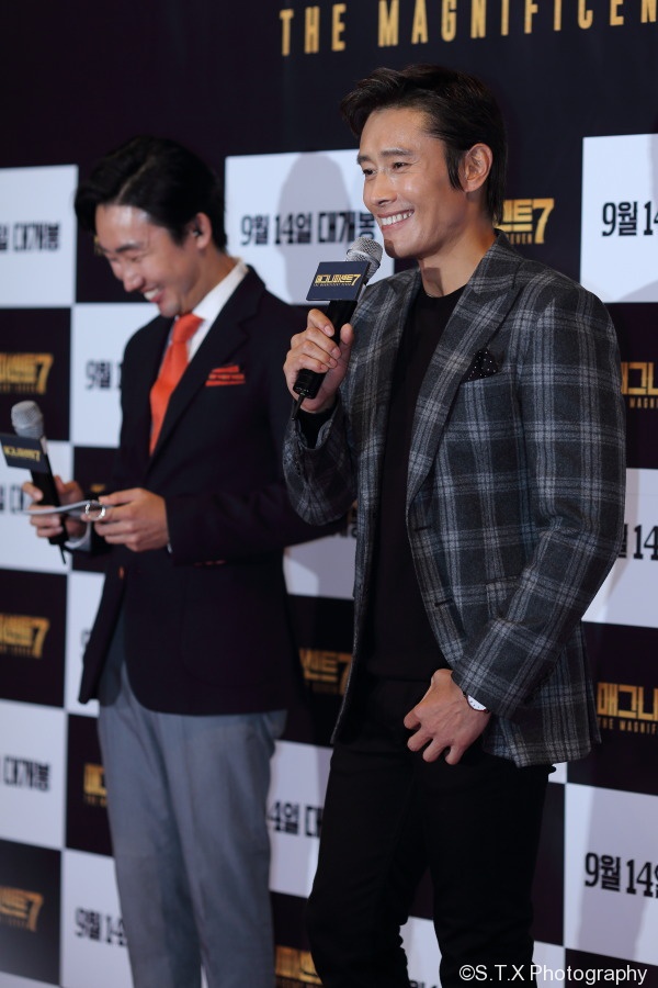 9月12日,美国米高梅电影公司出品的西部动作片《豪勇七蛟龙》在位于首尔三成洞COEX的MegaBox影院举办VIP试映会。电影主演、丹泽尔·华盛顿(Denzel Washington)、克里斯·帕拉特(Chris Pratt)、伊桑·霍克(Ethan Hawke)、文森特·多诺费奥(Vincent D'Onofrio)、 杰森·莫玛(Jason Momoa)等未能前来韩国,由李秉宪一人独撑大局。不过,李秉宪众多圈内好友李允美、金智勋、郑锡元、金宇彬、严智苑、晋久、张英男、曹承佑、李熙俊、吴达庶、李智雅、安昭熙、Apink成员孙娜恩、T-ara成员孝敏、少女时代成员秀英、2PM成员俊昊以及美国驻韩国大使马克·李柏特(Mark Lippert),李秉宪妻子李珉廷等都前来捧场。