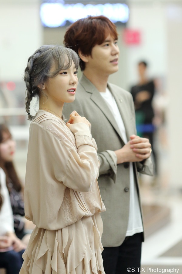 9月23日,韩国男团Super Junior成员圭贤与女团少女时代成员泰妍携手在位于首尔三成洞的COEX为所代言的品牌举办粉丝签名会。