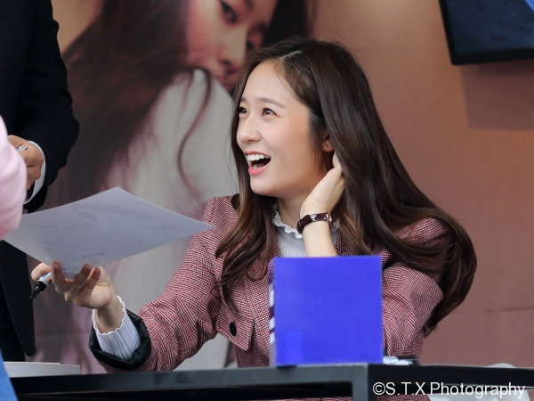 10月8日,韩国女团f(x)成员郑秀晶(Krystal)参加了在首尔西大门区沧川洞现代百货店举行的某品牌粉丝签名会。