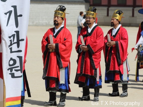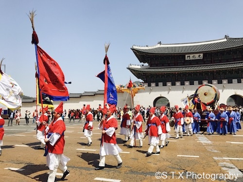今天随身携带了CONTAX G2+Biogon T* 28mm f2.8、iPhone 7 Plus、佳能5D Mark III+EF 200mm f/2.8L II USM,只拍摄了“御驾行列”部分,也就是去年没有拍摄的部分,但并没有拍很多照片。“御驾行列”于上午11点从景福宫出发,经过光化门广场、钟阁、钟路三街抵达宗庙。今年参加“御驾行列”的人员似乎有所精简,如果这个活动是国库拨款,那倒也情有可原。