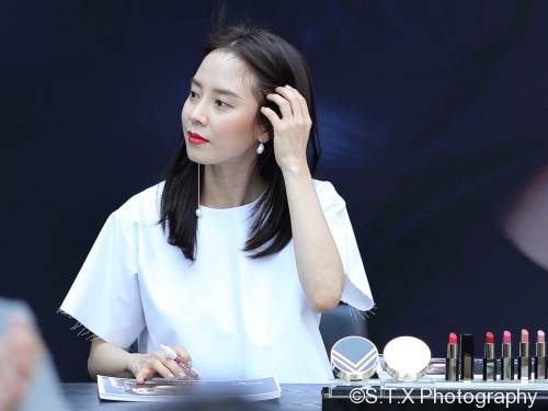 5月21日,韩国演员宋智孝在首尔明洞新世界百货店为所代言品牌举办了粉丝签名会。