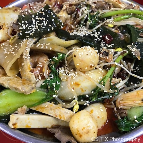 有一道是麻辣香锅,正宗中国味,在首尔地铁2号线大林站的中国城跟朋友一起吃的。大林站12号出口附近官方没有什么中国城的称呼,但却是地地道道的中国城。什么油条水饺麻辣烫,火锅鸭脖小龙虾,米线臭豆腐冰糖葫芦……凡是想吃的,那里都能找到。
