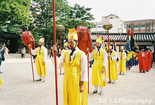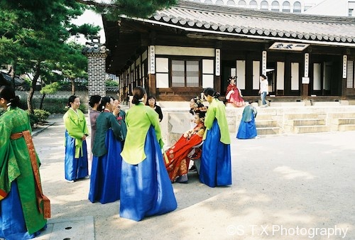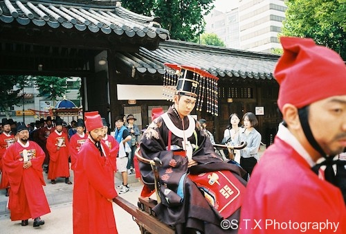 虽然在首尔生活了这么多年,云岘宫我却从未去过。9月30日,我带CONTAX G2+Biogon T* 28mm f2.8和Leica M6+Sonnar T* 50mm f/1.5 ZM去拍了一些朝鲜高宗与明成皇后嘉礼仪式再现活动的照片。如果带了数码相机,有机会拍到更多婚礼过程的照片效果会更好,希望以后有机会补拍。