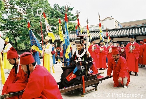 朝鲜王朝礼制深受中国传统文化影响,嘉礼也成为王或世子的婚礼仪式。高宗与明成皇后的嘉礼是在高宗即位3年后的1866年举行的。嘉礼过程包括礼前表演、王妃封号授予仪式“妃受册仪”、皇宫中婚礼喜宴上的舞蹈表演“宫中呈才”、王带领着护卫队迎接新娘的“亲迎礼”等过程,明成皇后等登场人物的华丽服饰也都是根据实际历史考证做出来的。因高宗与明成皇后结婚时年龄为15岁和16岁,所以高宗和明成皇后是由年龄相当的艺术高中的学生扮演。